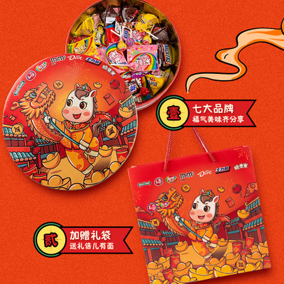 玛氏马年虹福礼盒583g,内含德芙.士力架.脆香米,箭牌糖,彩虹糖,ms巧克力豆等等。到手48件套,经典糖果组合,适合送礼自用!年味十足,甜蜜满载!