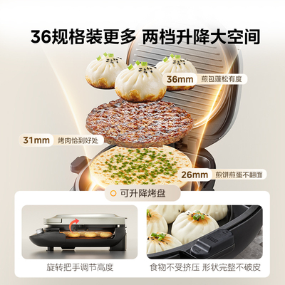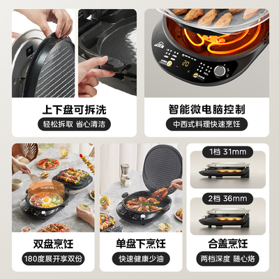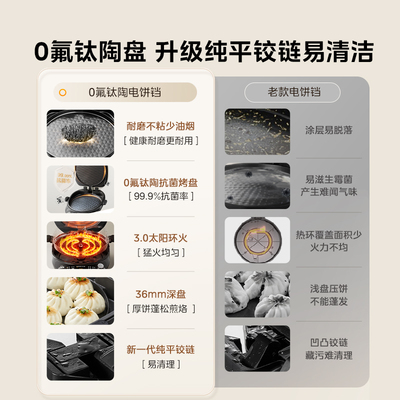 美的0氟钛陶匀火电饼铛,家用双面加热加大加深可拆新款料理烹饪机