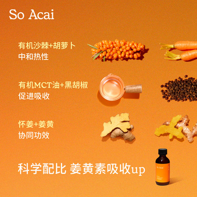 【新品】soacai浓浓姜黄饮沙棘汁浓缩怀姜汁姜黄素肉桂粉黑胡椒,,