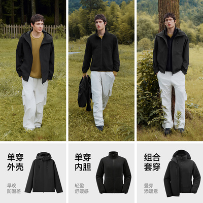 到手价153.2(券后价233-淘金币4.66-消费券28.54-礼金46.6森马2025秋冬新款三合一夹克,采用可拆卸设计,灵活应对多变天气,内胆外层自由组合,兼顾保暖与透气。面料具备三防功能——防风、防水、防污,适合户外旅游、日常通勤等多种场景。男女同款剪裁,简约大方,适配不同穿搭需求。细节做工扎实,拉链顺滑,口袋实用,提升整体使用体验。作为一款兼顾功能性与实用性的外套,是秋冬换季的理想选择。
