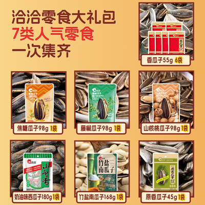 【洽洽瓜子大礼包】内涵七种瓜子,金刚圈金币凑单到手28元,聚划算洽洽财到福到瓜子大礼包1.017kg葵花籽西瓜子南瓜子年货休闲零食
