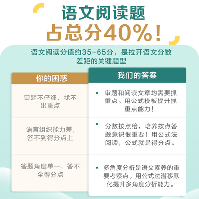 全国通用,800典型题,全5大专项,三维度解析,公式法解语文阅读,紧跟中考改革趋势,贴合考情,精准命题,才能快提分~