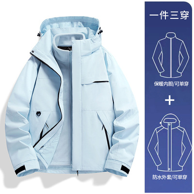 三合一冲锋衣,一衣三穿,满足不同场景需求。防风抗造,耐磨防刮,澳粒绒内胆锁住温暖。无论是登山探险还是日常通勤,都能为你保驾护航。