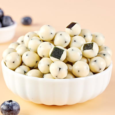 【店铺会员立减1.2淘金币1.19充值购物金,充500送50到手更便宜】蓝莓山楂球夹心,回味无穷。家庭小憩时光,必备网红休闲零食品。精致夹心巧克力豆,炫酷的快乐味蕾触达。