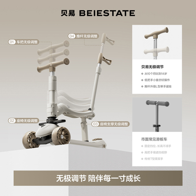 贝易三合一儿童滑板车,1-6岁通用,可坐可立可滑,一键折叠便携,加宽轮毂稳稳当当,宝宝学步好帮手!【赠运费险】