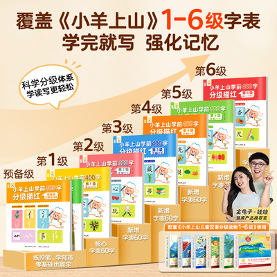 小羊上山400字分级描红8册,覆盖1-6级字表,含控笔训练与部首学习,幼小衔接必备,练字启蒙好帮手!
