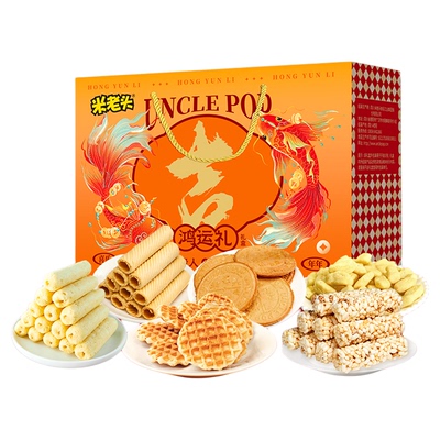 米老头鸿运礼盒780g,年货精选!精选多种经典零食,口感丰富,送礼自用都体面。礼盒装更显心意,适合送长辈、走亲戚,节日氛围拉满!