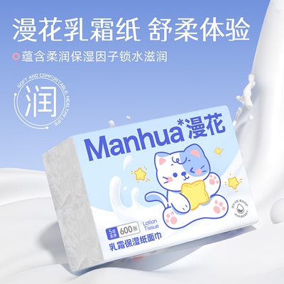 宝子们看过来!漫花乳霜纸3包,触感如云朵般柔软,擦鼻子不泛红,感冒、过敏时用它,给肌肤超温柔的呵护~