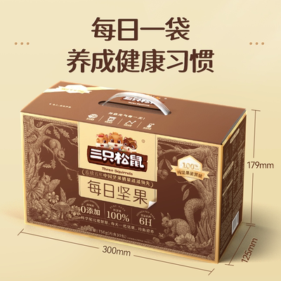 叠天降礼金5.78元,淘金币抵扣1.44元,下拉详情超级补贴领39-5红包到手45.6元【750g/30袋】,三只松鼠每日坚果混合纯坚果礼盒