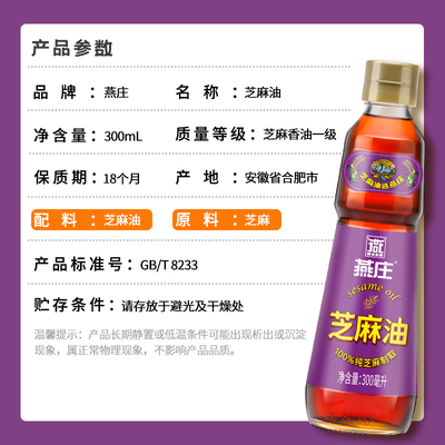 燕庄香芝麻油300m火锅蘸料