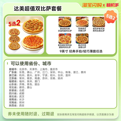 达美乐必胜客比萨套餐多选1饿了么,淘金币抵扣到手46.3,免配送费,有效期14天,可囤!