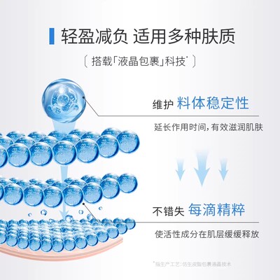 助力肌肤深层保湿,改善干燥纹路,提升弹性与紧致度。水润质地易吸收,不黏腻,成分安全温和,适用多种肤质。