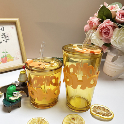 玻璃杯简约ins字母办公室双饮吸管杯