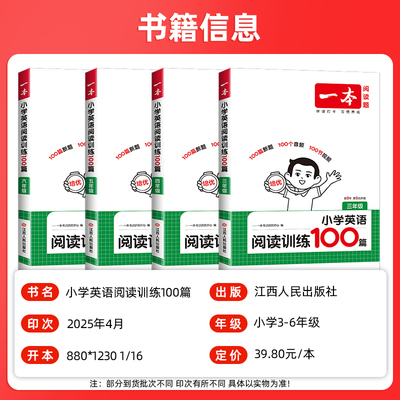2026新版一本小学英语听力/阅读训练100篇,3-6年级适用,分话题,分级训练,都是新课标和新教材的考题,循序渐进提升听力水平,全面升级题型,更符合新课改后的考试要求,纯正外教音频,语音语调纯正,音质高清,每篇都附带原文,助力孩子英语成绩提升!