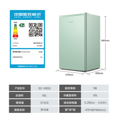 海信95L一级能效单门冰箱,节能省电,适合租房、宿舍使用。现享换新补贴,小巧实用,冷藏+微冻功能齐全,性价比高!