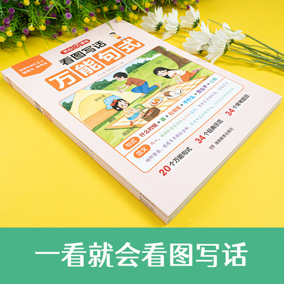 专为一二年级设计!看图写话万.能句式+范文+技巧,图文并茂,轻松激发孩子表达欲和写作兴趣~上下册全彩印刷,每日一练不枯燥,夯实写作基础超值之选!