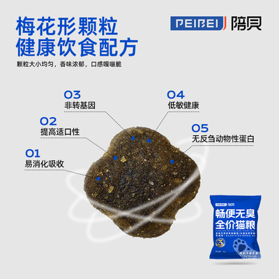 陪贝爆款猫粮试吃畅便无臭呵护肠胃猫粮控毛球粮猫咪益生菌1801。