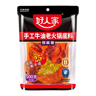 【好人家】手工牛油火锅底料50g*4块,礼金+金币到手15.7元左右!经典麻辣鲜香,汤红油亮,牛油醇香浓郁,涮肉煮菜都美味!