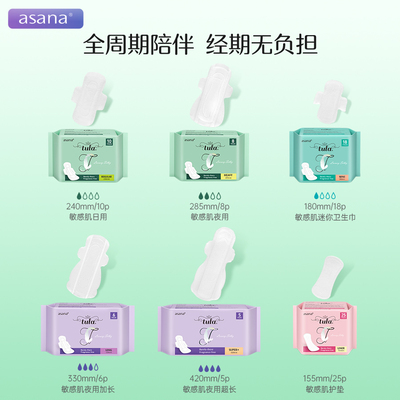 阿莎娜卫生巾天降3.9任选1包,日用夜用都齐全,全系列全周期随心配!仙女姨妈期需要的咱都有~速度薅!!!