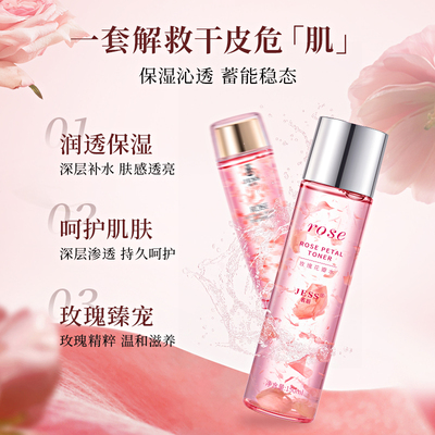 JESS名后玫瑰花瓣精华液爽肤水套装,敏感肌专属护理,干皮补水保湿一步到位!官方正品,限时秒杀立减10元,手慢无!