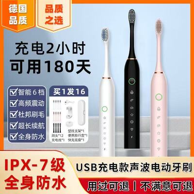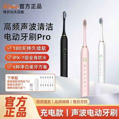 充电式声波电动牙刷,软毛护龈,学生成人都能用!防水软毛刷头,声波洁牙,懒人刷牙神器来了!一次充电用半月,软毛声波电动牙刷,全家适用超省心!