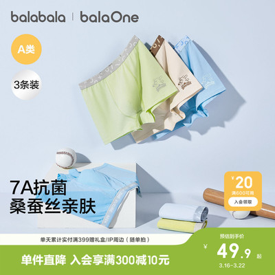 【叠桃李金39.9三条】,巴拉巴拉男童内裤平角儿童四角短裤中大童不夹PP抗菌透气三条装