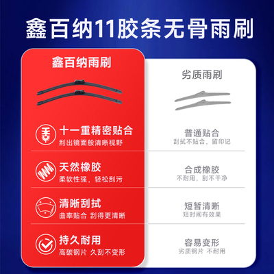 11层胶条无骨设计!静音贴合不跳动,雨天视野清晰如初,4S店同款品质保障~