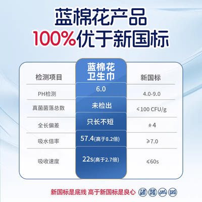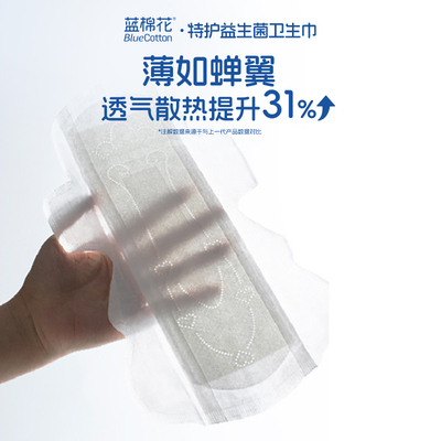 蓝棉花益生菌卫生巾日夜用姨妈巾护垫套装,超薄透气官方旗舰店正品