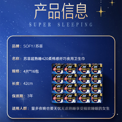 【苏菲卫生巾】超熟睡柔棉感,防侧漏护翼,量多夜用姨妈巾,420mm64片,