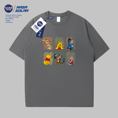 NASA联名短袖T恤,男女情侣款,夏季百搭休闲设计,通勤穿搭,简约个性,舒适透气,适合日常出街或办公场合。