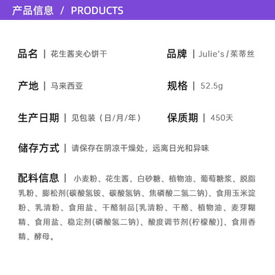 【超级立减12%】到手6.78元。拍12,领55元券到手26.3元。马来西亚进口julies茱蒂丝花生酱夹心饼干休闲经典零食~~