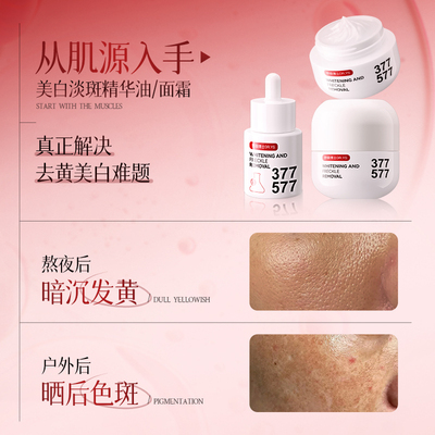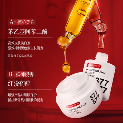➡377:抑制黑色素、减少色斑的形成(阻黑色素)➡577:加速黑色素的代谢、淡化形成的色斑(加快变白)⚠重点是不会反黑!直接和暗沉蜡黄说拜拜!