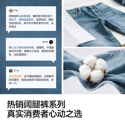 森马新款复古港风阔腿牛仔裤,莱赛尔面料舒适透气,直筒设计显瘦遮肉,春季穿搭!轻松打造松弛感时尚造型!