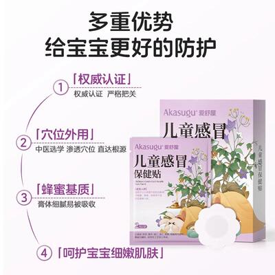 【任选拍3件,券后69,叠17元淘金币到手51.9,折17.3/件】爱舒屋儿童感冒帖,中药配方,穴位外用,权威安全认证,快速缓解宝宝感冒不适~还有咽扁、消食、润肺止咳、脾胃保健贴任选!