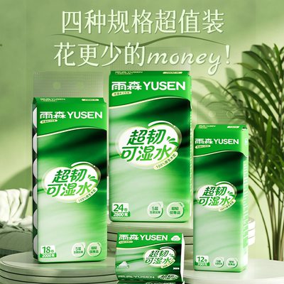雨森卫生纸超韧可湿水,原生木浆五层加厚,耐用不掉絮,4斤拍2件仅需29.8元!家庭实惠之选,柔软吸水,适合日常使用。
