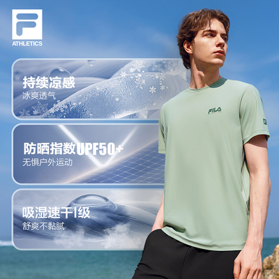 2026夏新款FILA斐乐男式短袖T恤,凉感速干面料,透气防晒,运动健身跑步!冰丝材质,清爽不闷汗,户外活动更舒适!