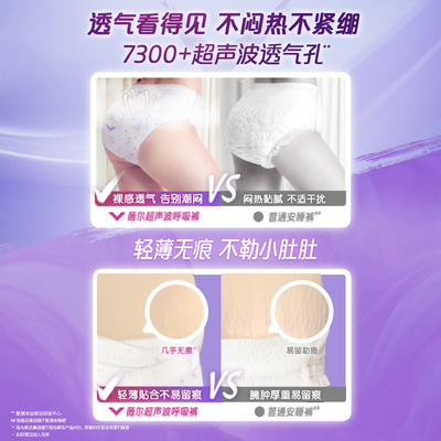 【详情页秒杀13.3元】裤型M码3条*3包,共9条【新旧包装,随机发货】!!!薇尔安心裤热销超7000万片!7300+个透气孔~无痕贴合,瞬吸干爽!