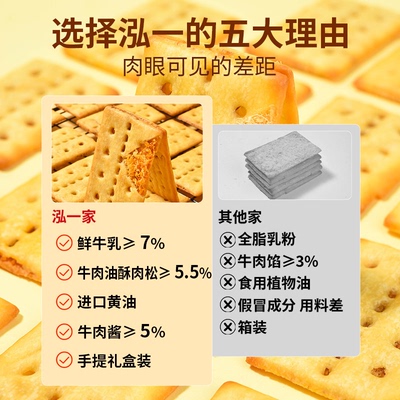 过年泓一牛肉馅酥脆饼干,夹心咸味解馋办公室零食小吃休闲食品肉松