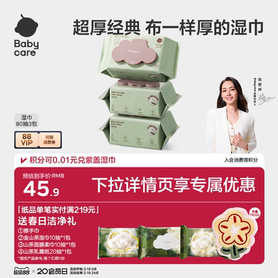 【详情页叠金币82.8】,【详情领优惠】babycare湿巾婴儿手口专用湿纸巾新生儿童安全加厚