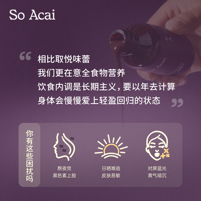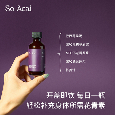 (淘金币抵扣1.99,消费券抵扣10.73) 还有超多款口味可以选择哦!soacai浓浓巴西莓饮,来自巴西莓果泥,拥有丰富的花青素,Omega-9,黄酮类化合物,维生素E,膳食纤维,多种矿物质,三重花青素协同加倍氧护力,开盖即饮,方便随时补充!