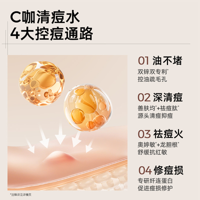 C咖油痘肌清痘水200ml抗痘控油爽肤水精华水祛痘舒缓修护痘损油皮。