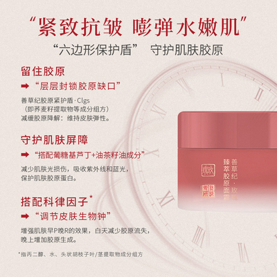 善草纪三代玫瑰胶原面霜滋润补水保湿祛黄提亮抗皱抗老抗衰面霜。