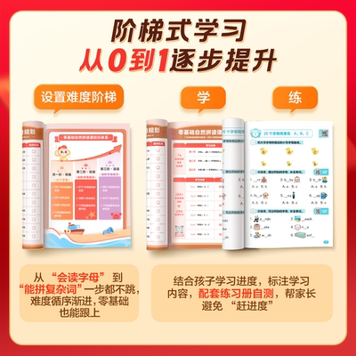 学而思英语零基础自然拼读课!趣味学习字母规则拼读法秒记1000词小学英语一二三四五六年级通用0基础自然拼读学训测试练习册