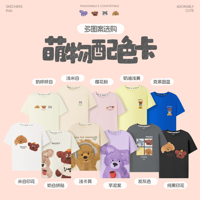 Skechers斯凯奇儿童贴贴T夏季短袖T恤,纯棉材质柔软透气,卡通设计萌趣十足,男女童皆宜。拍2件仅需69元,!