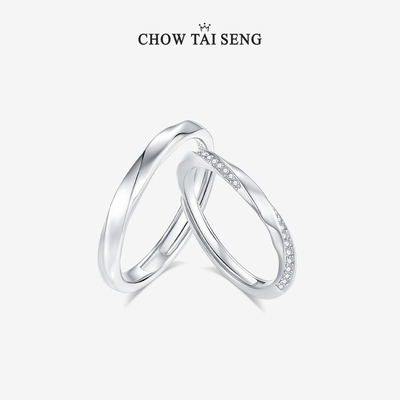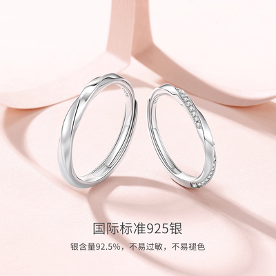 周大生纯银莫比乌斯情侣对戒,可调节大小,时尚百搭,适合生日、纪念日送女友,寓意永恒爱意,品质保障,浪漫之选!