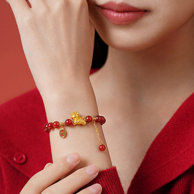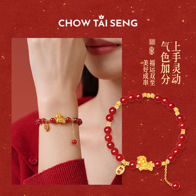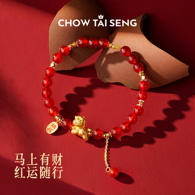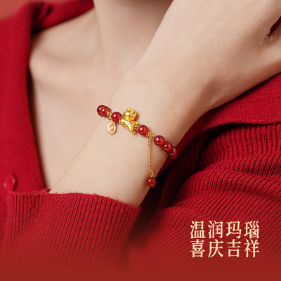 【国风高级感红玛瑙手链】周大生新款,红玛瑙搭配S925纯银,寓意“马上有财”,送女友生日礼物超有心意!淘金币可抵扣,性价比高,精致又显质感!