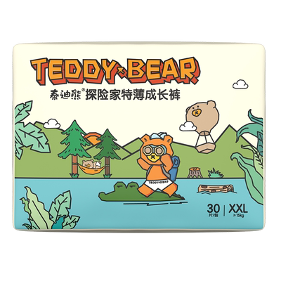 泰迪熊探险家2.0超薄透气尿不湿,XL-3XL码拉拉裤,防漏设计,柔软亲肤,宝宝全天舒适不闷热!拍2件享优惠价,呵护宝宝娇嫩肌肤!