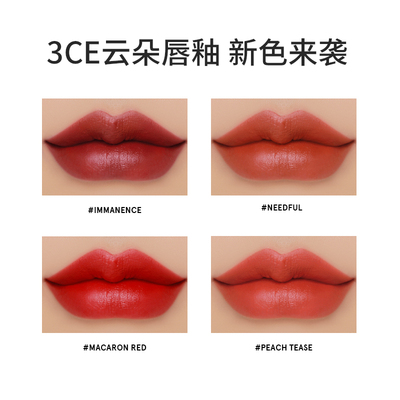 消费券+淘金币单件55.69,两件分开拍到手79【官方正品】3CE云朵唇釉口红唇膏哑光雾面铁锈红烂番茄色T