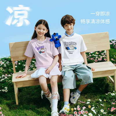 【BOBO联名T】斐乐2026夏季新款儿童短袖T恤,纯棉材质柔软透气,男女童通用,时尚休闲设计,让孩子穿搭更出彩!