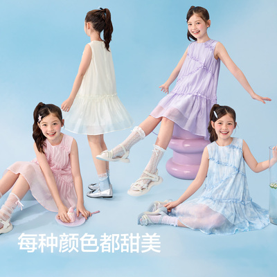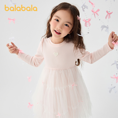 巴拉巴拉女童网纱公主裙,蝴蝶结撞色设计,甜美可爱,适合日常穿搭或节日出席,温柔女孩首.选!